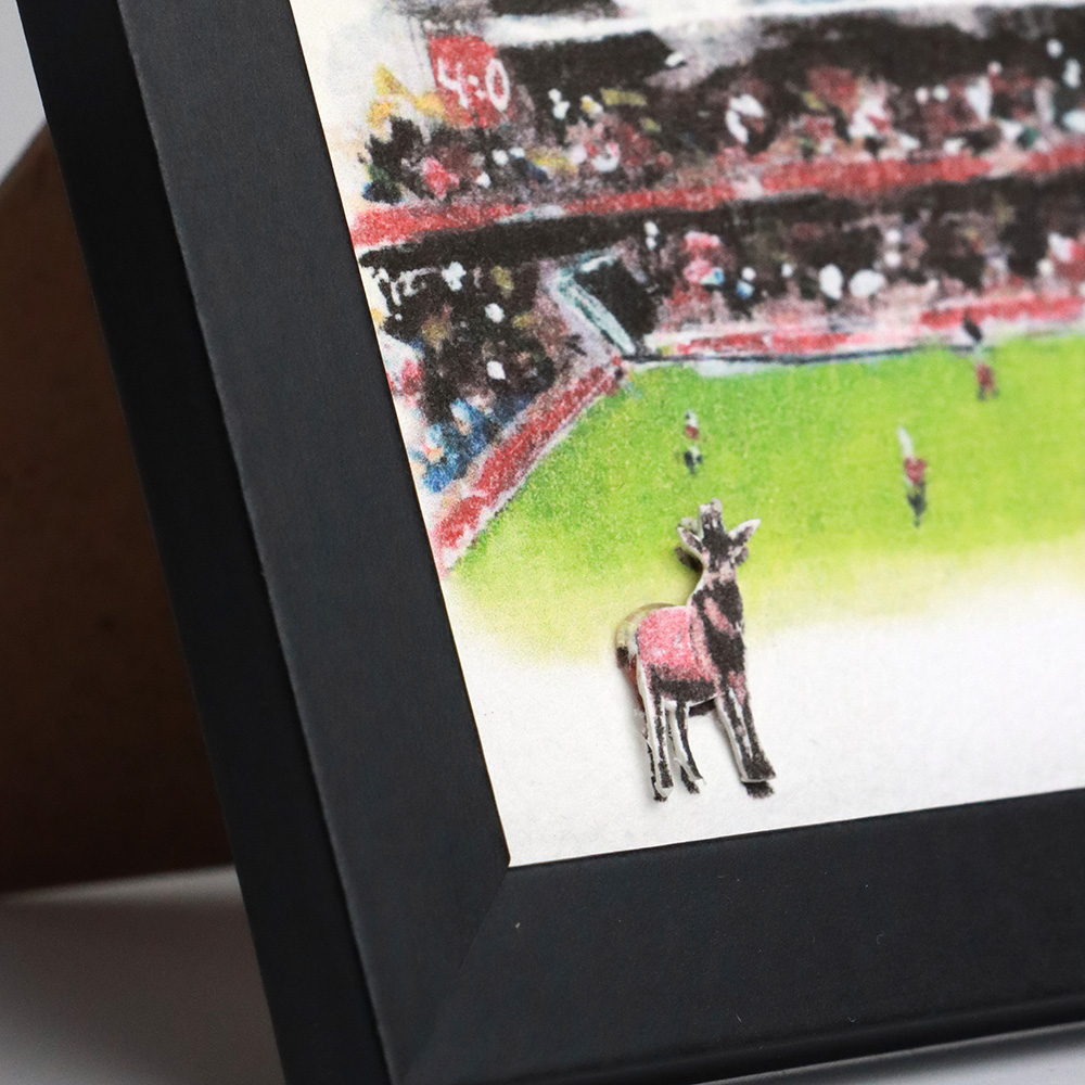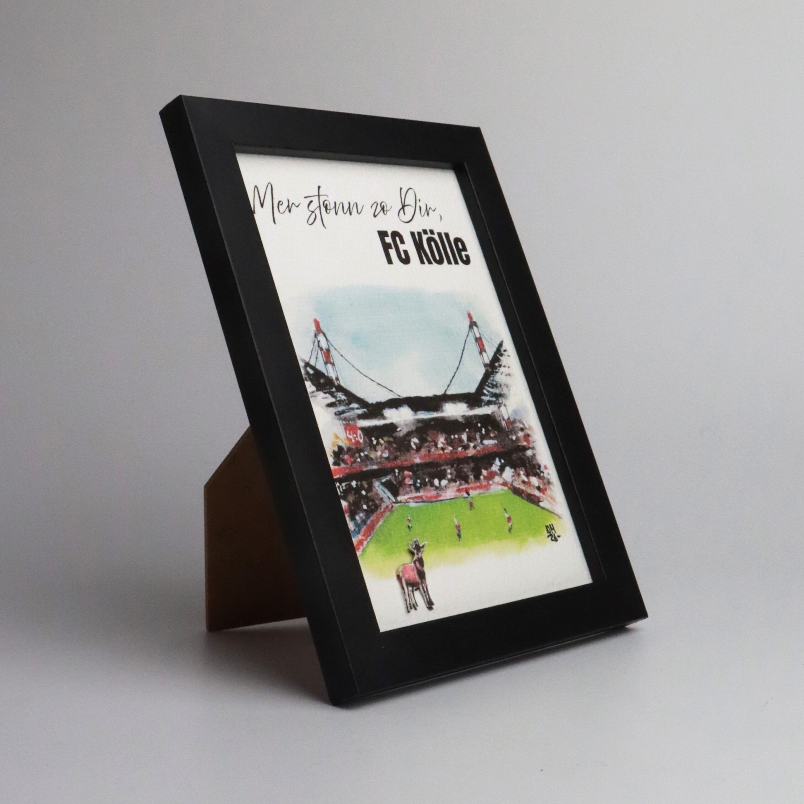 Der Kunstdruck im Format ca. 10,5 × 14,5 cm (Bildausschnitt ca. 8,2 x 11,9 cm) eignet sich ideal als Köln-Deko, Souvenir oder besonderes Geschenk für FC-Fans. Ob aufgestellt oder aufgehängt – das Motiv setzt überall einen klaren, kölschen Akzent.