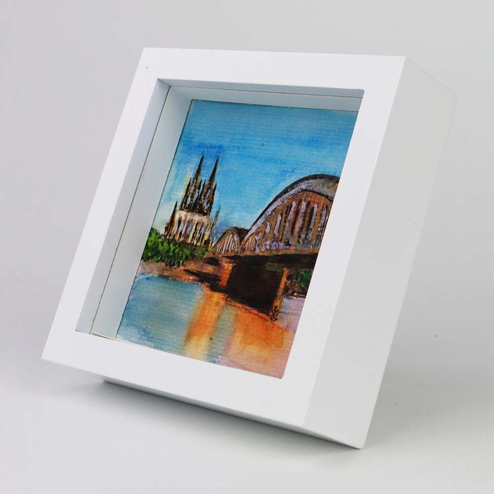 Mini-Aquarell „Kölner Dom mit Hohenzollernbrücke" – Kunst mit Rheinblick!