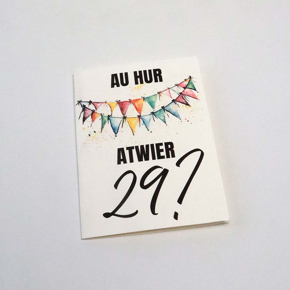 | Variante | Atwier 29?, Au banaan, Boom, Happy birthday, Jeburtstag, Och herm, Schon wieder, Sowas von |