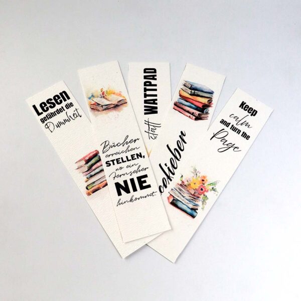 Diese Lesezeichen sind kleine Begleiter für große Geschichten. Mit liebevoll in Aquarell handgemalten Motiven und Designs bringen sie Freude zwischen jede Seite. Hochwertig gedruckt und stabil verarbeitet – perfekt für dein Lieblingsbuch oder als kleine Geschenkidee für echte Bücherfans.