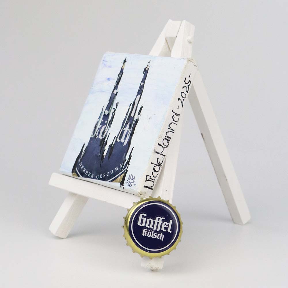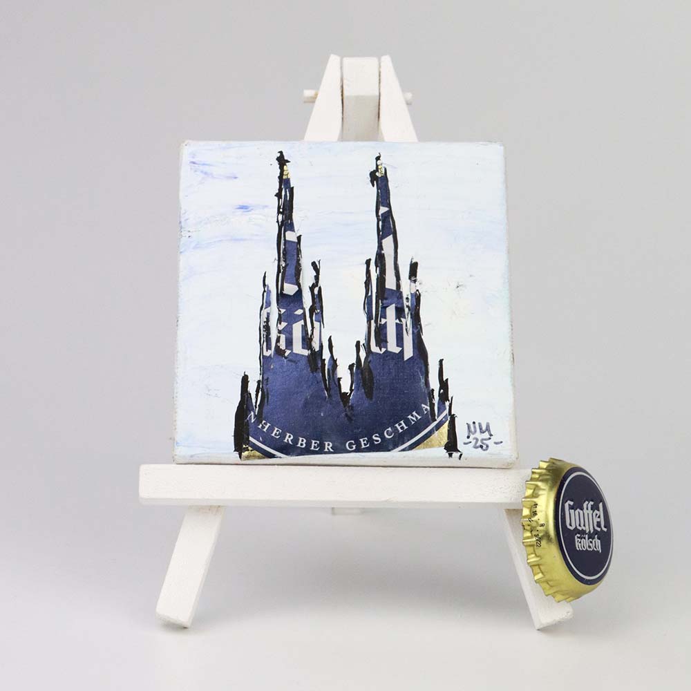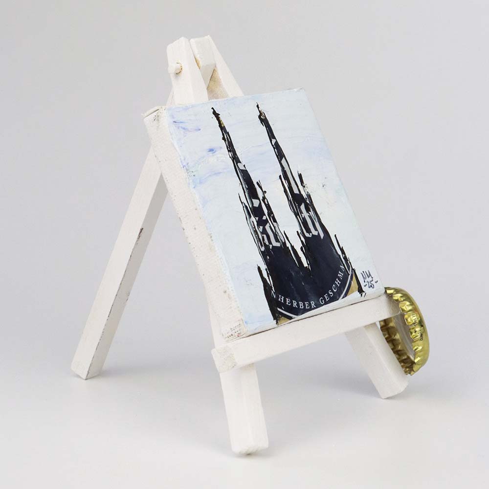 Das Dom-Bild kommt auf einer weißen Miniatur-Staffelei daher mit Gaffel-Kronkorken.